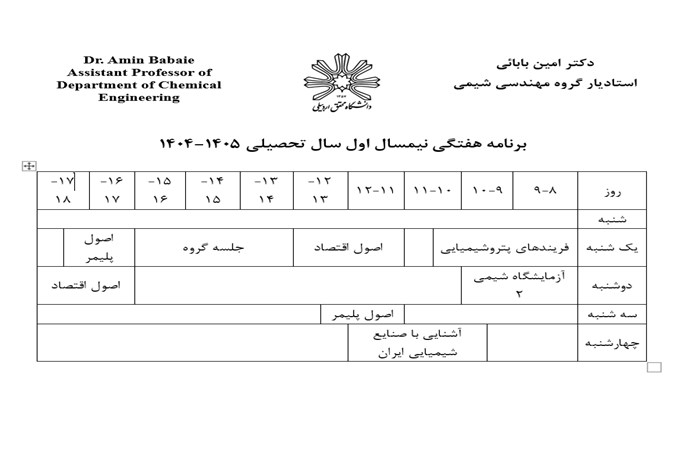 دکتری: مهندسی شیمی - گرایش مهندسی پلیمر - از سال 1396 تا 1400 - دانشگاه صنعتی سهند تبریز