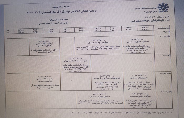 کارشناسی ارشد زیست شناسی: دانشگاه تربیت مدرس