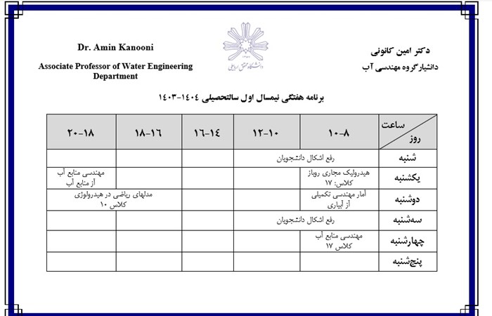 برنامه هفتگی استاد در ترم جاری