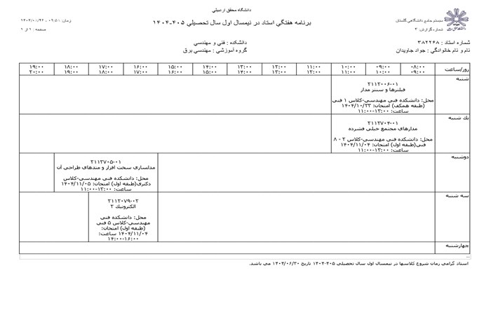 برنامه هفتگی استاد در ترم جاری