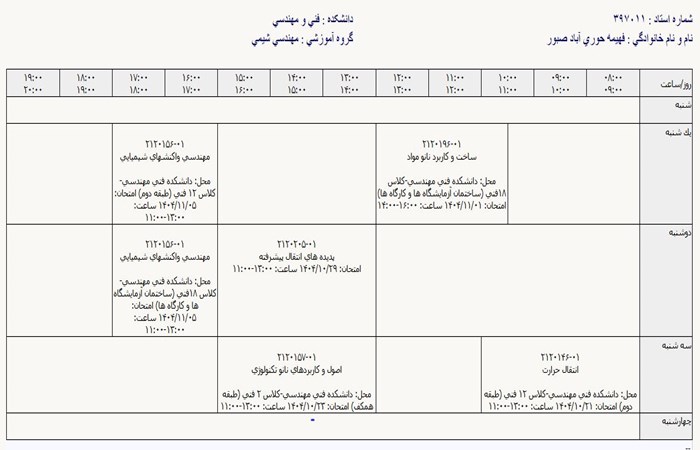 دکتر فهیمه حوریآباد صبور دانشیار مهندسی شیمی در دانشگاه محقق اردبیلی است. ایشان دکترای مهندسی شیمی – نانوفناوری را از دانشگاه تهران اخذ کردهاند و در طول دوره دکتری، دوره فرصت مطالعاتی را به عنوان پژوهشگر مهمان در دانشگاه ناگاساکی، ژاپن گذراندهاند. حوزه پژوهشی ایشان مواد پیشرفته، به ویژه چارچوبهای آلی-فلزی (MOF) و نانوکامپوزیتها، برای کاربردهای محیطزیستی مانند تصفیه آب و حذف آلایندهها است. دکتر صبور مقالات متعددی در زمینه جاذبهای مبتنی بر MOF، غشاهای نانوکامپوزیتی و جداسازی میکروپلاستیکها منتشر کردهاند. ایشان همچنین در فعالیتهای حرفهای و انجمنهای علمی فعال هستند؛ از جمله معاون شاخه ایران انجمن بینالمللی InterPore، رئیس کمیته توسعه عضویت انجمن آموزش مهندسی ایران و نماینده انجمن مهندسی گاز ایران در دانشگاه خود. تلاشها و دستاوردهای ایشان با جوایزی مانند رتبه دوم پژوهشگر برتر دانشکده مهندسی (1403)، رتبه اول ارزشیابی دانشکده (1397) و رتبههای ممتاز در دوره کارشناسی و کارشناسی ارشد مورد تقدیر قرار گرفته است